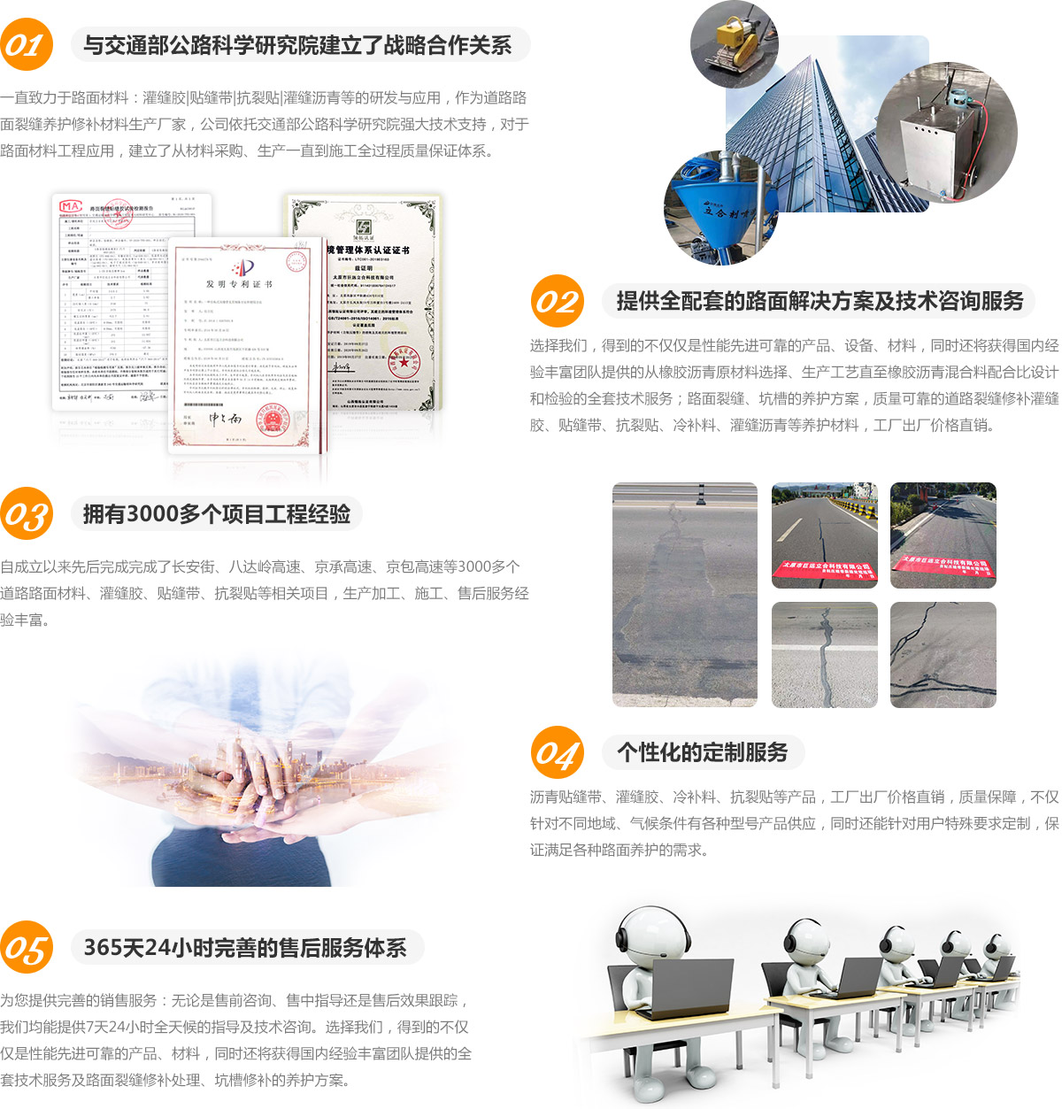 巨遠(yuǎn)立合技術(shù)(北京)有限公司成立于2009年,是一家集新材料研發(fā)、生產(chǎn)、推廣于一體的現(xiàn)代高新技術(shù)企業(yè)。多年來,巨遠(yuǎn)立合一直專注于道路預(yù)防性養(yǎng)護(hù)領(lǐng)域,持續(xù)加大研發(fā)投入,擁有了多項(xiàng)自主知識(shí)產(chǎn)權(quán)的專利技術(shù)和著作權(quán),其中取得國家發(fā)明專利的“L-ZN自粘壓縫帶”在2011年由科技部評(píng)為“國內(nèi)技術(shù)領(lǐng)先”的科技成果。目前該產(chǎn)品已廣泛應(yīng)用于全國16個(gè)省的高速公路、國道、省道及縣鄉(xiāng)道路。巨遠(yuǎn)立合也成為自粘壓縫帶產(chǎn)品開發(fā)最早、生產(chǎn)規(guī)模和銷售規(guī)模最大的企業(yè)。